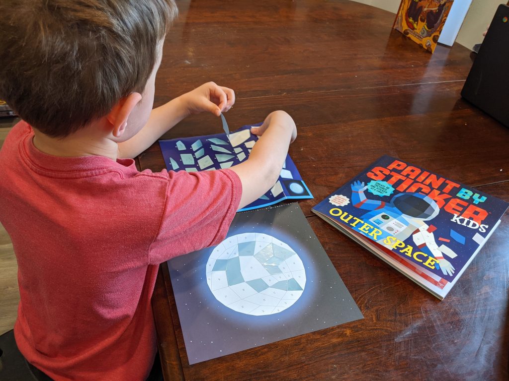 For kids who enjoy stickers, Paint-by-Sticker books are a great option. They take time, encourage number sequencing, require focus and careful placement, and result in a fun mosaic that can be gifted to a friend or grandparent.