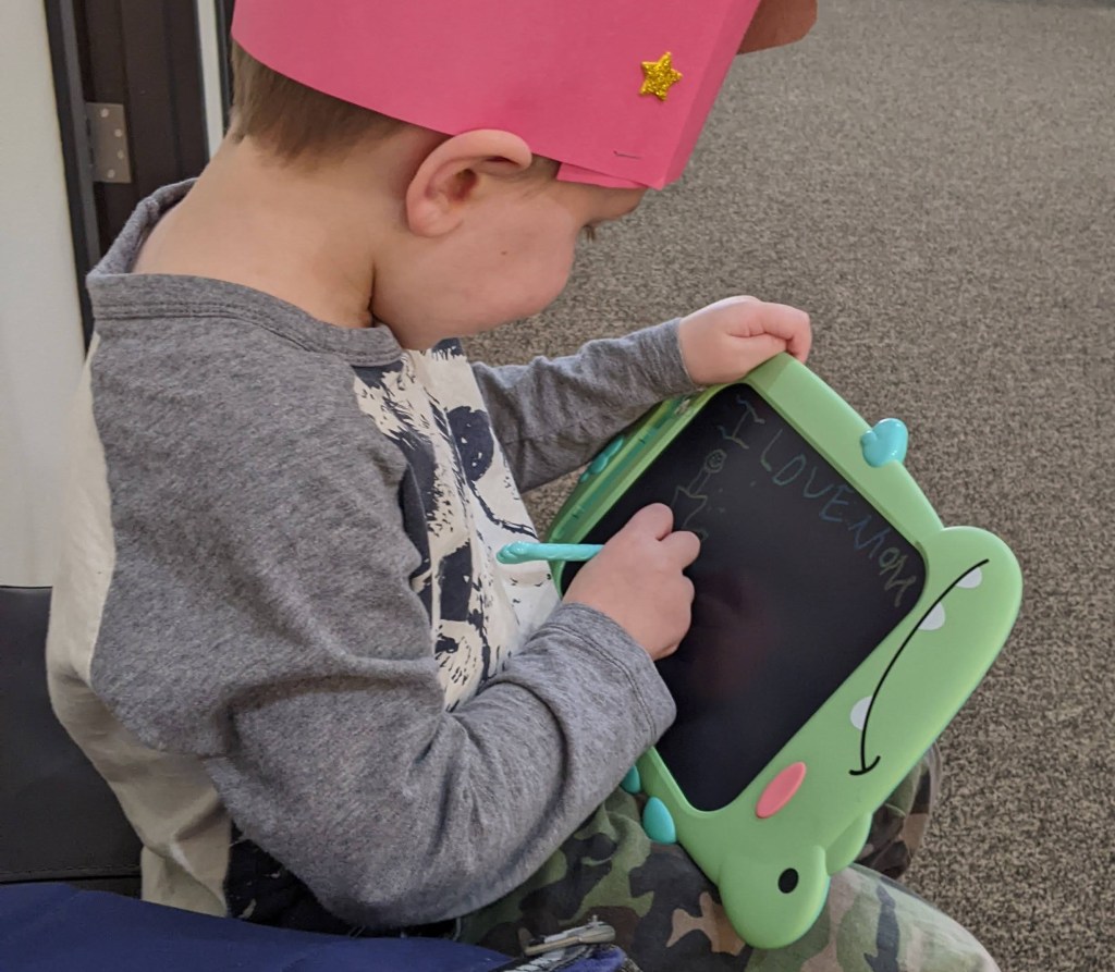 If your kids love to draw but loose, crinkly pages are filling your purse and back seats of the car, you’ll love Doodle Pads. They aren’t a perfect replacement for paper, but for trips or church they’re easy to grab and go. It’s a drawing pad that lights up wherever the pen touches and clears at the click of a button. The battery lasts for years, and they cost less than $10 each. We also use ours for spelling and math practice.