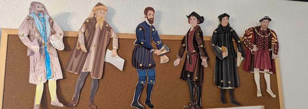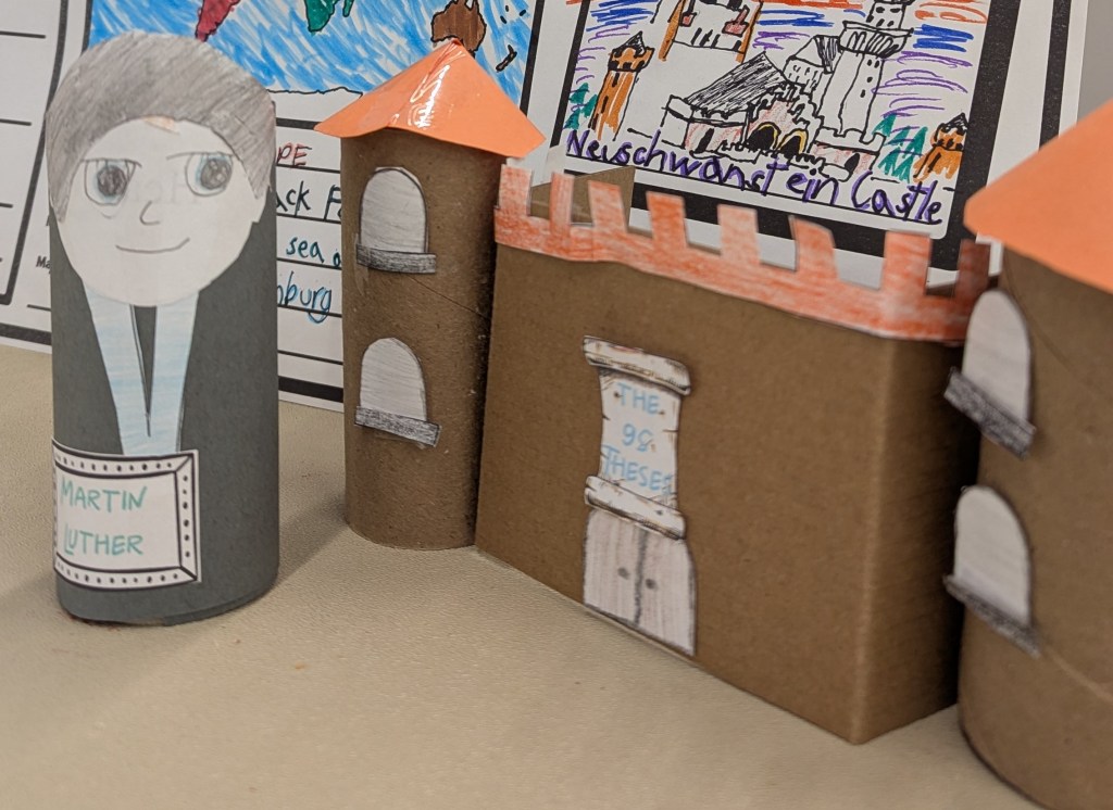 Downloadable Resources: Thinking Kids Press also offers kids crafts for hands on learning. We made paper roll dolls of John Knox, Martin Luther and John Calvin. You can also download what you would need to create a lap book which will help with vocabulary, timeline and geography.